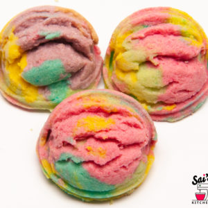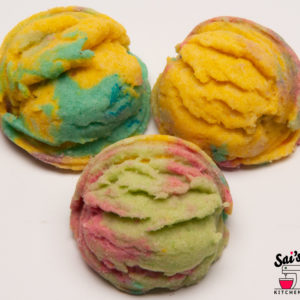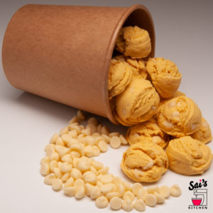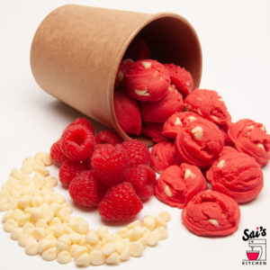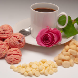 Ingredients : Wheat flour, butter, sugar, baking powder, rose extract, rose syrup, white chocolate chips, Macadamia, food colouring.